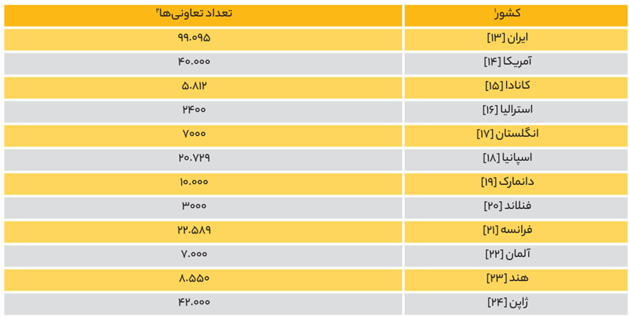 جدول شماره یک: مقایسهی تعداد تعاونیها در ایران با چند کشور مطرح در حوزهی تعاونی